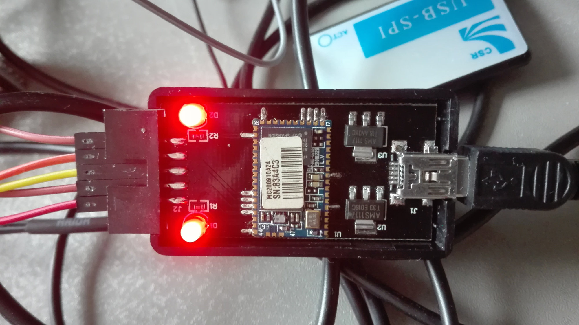 Angeschlossen ist es so: Programmer --> TXB0108(Logik Level Converter) --> CSR8645