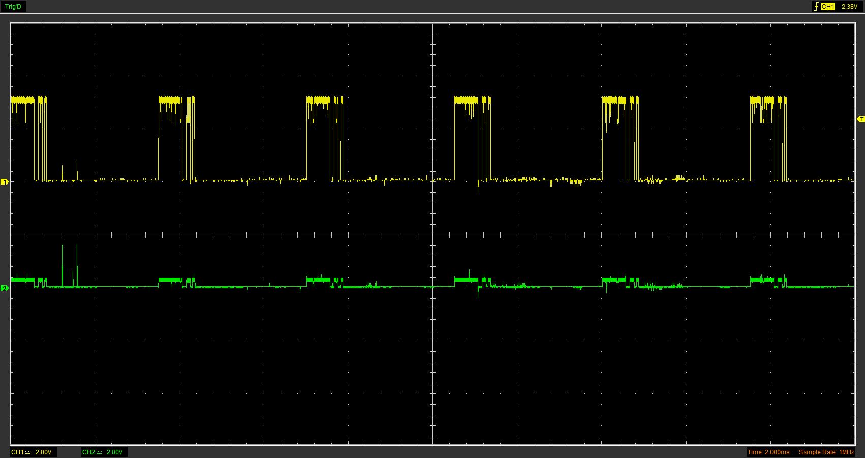 Erst konnte ich das nicht glaube, dass der Programmer auf beiden Datenleitungen seine Nachrichten sendet. Ich habe alles mehrmals geprüft, ob ich nicht ein Fehler beim aufnehmen des Pegels gemacht habe. Aber alles war so wie es sollte.