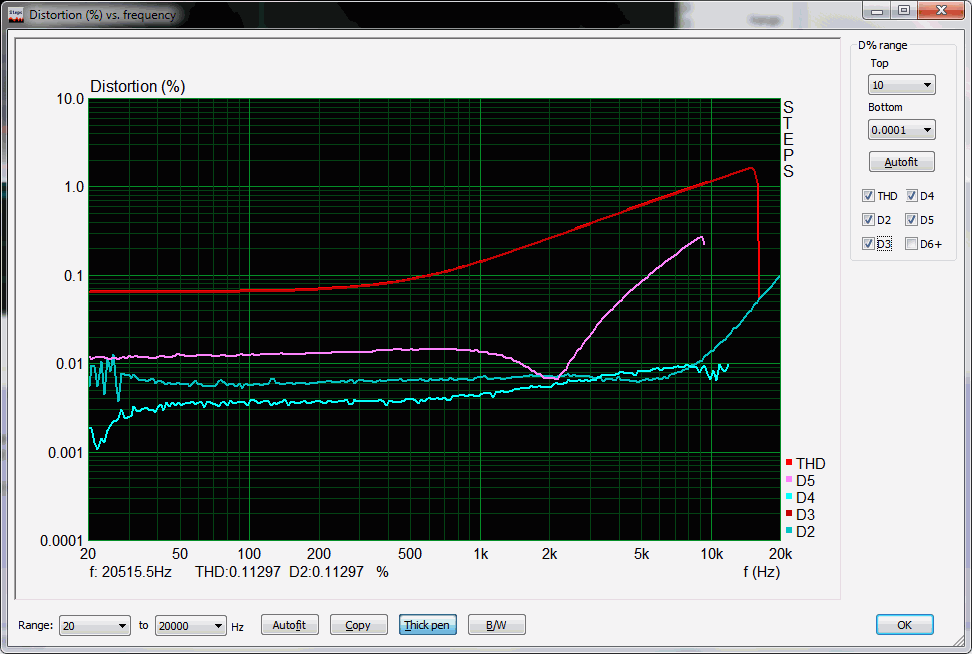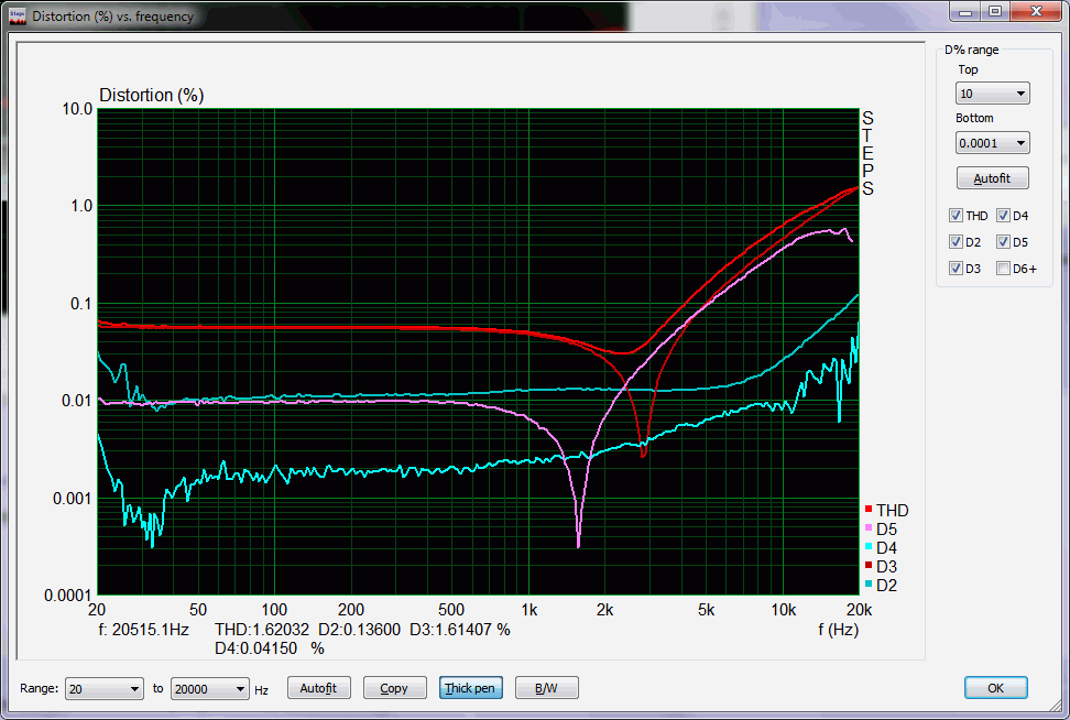 Bei den Klirr-Messungen fallen solche "Trichter" auf, die Position ist abhängig von der im Ausgangsfilter eingesetzten Induktivität.