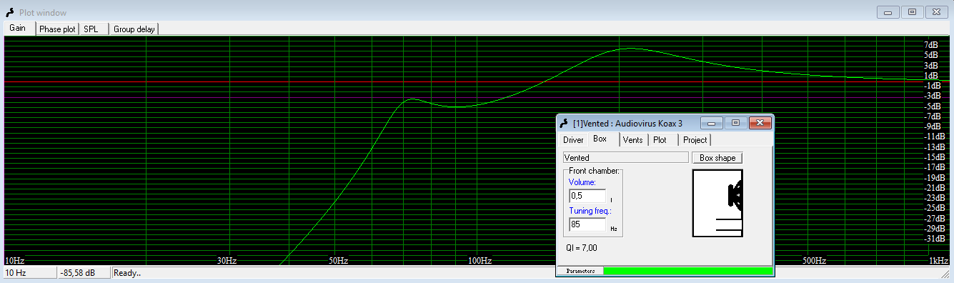 Ich denke mal, dass der Buckel bei 200 Hz abgeschwächt werden muss. Der Bass soll auch durch einen Regler einstellbar sein.