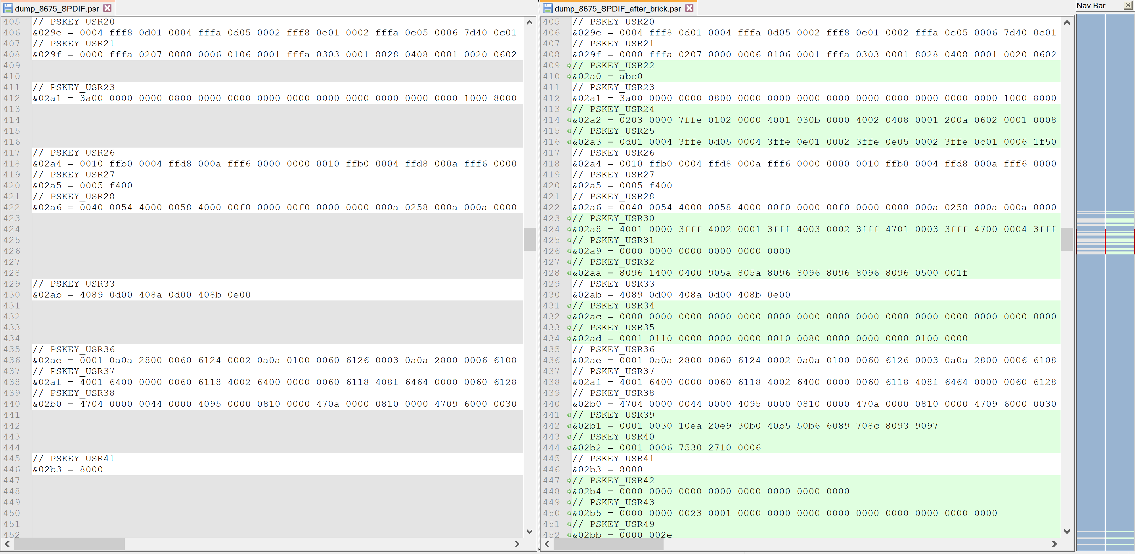 Ich hab gerade mal meine Theorie bestätigt. Links das Backup von Tag 1/ Rechts aktueller Dump !nachdem genau das linke zurückgespielt wurde!