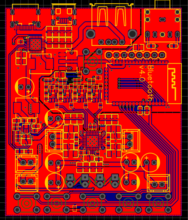 Bei diesem Platinendesign habe ich Aktive Tiefpässe zwischen BT-Modul und Verstärker vorgesehen.