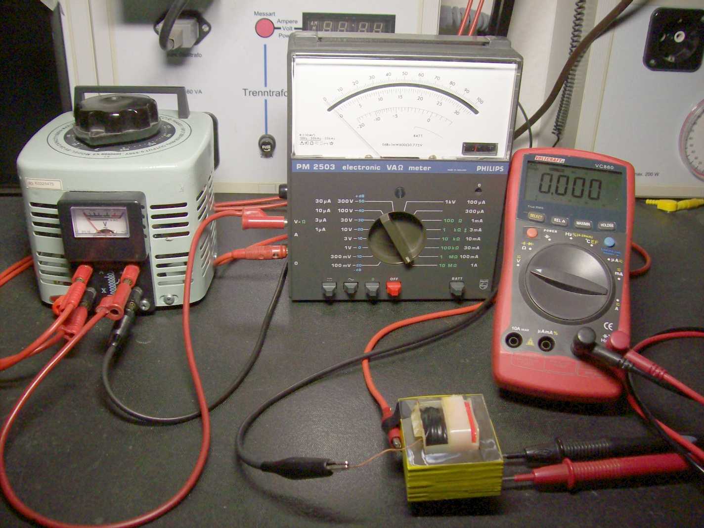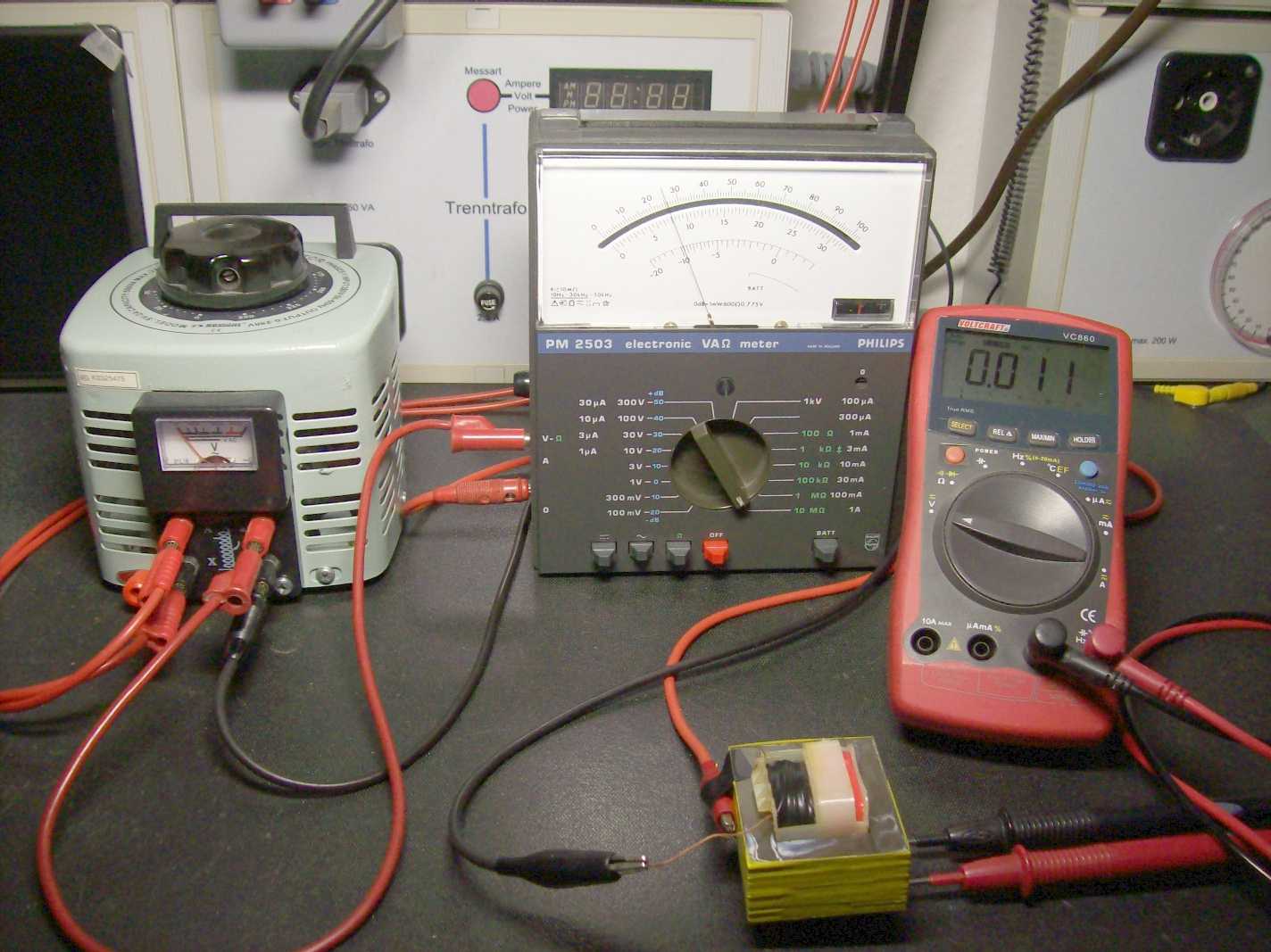 0mV AC-Ausgangsspannung (DVM) bei 0mA bifilar-Strom: