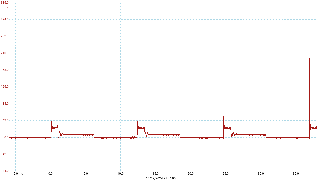 Der Funken selbst ist übrigens mit 1ms Länge bedeutend kräftiger als ich erwartet habe. Die Simulation hatte nichtmal die Hälfte.