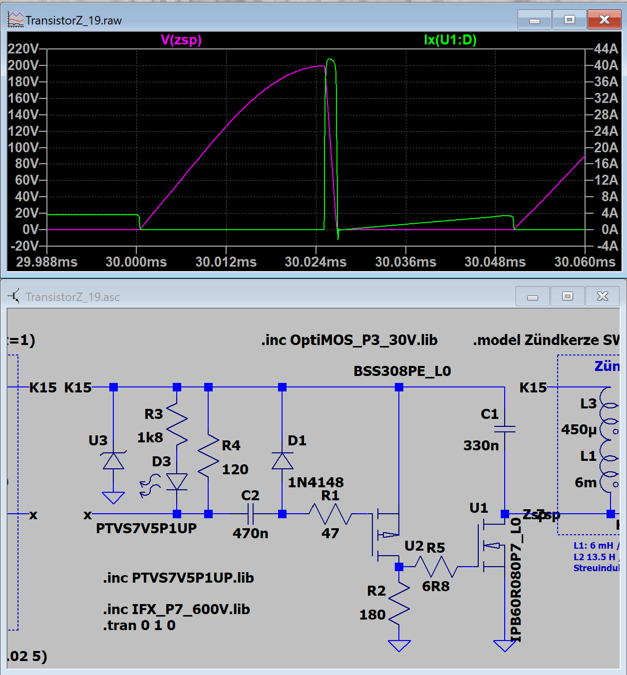 Der Kontakt kann das ab. Das ist die gängige Methode herauszufinden, ob die Zündkerze Energie bekommt (ohne sie herauszuschrauben). Am Kontakt rumwackeln und sehen, ob es spratzelt. Nicht die feine Art, aber üblich. Ob der MOS das auch abkann, weiss ich nicht. Wird getestet. Deshalb habe ich eine Variante mit Gürtel und Hosenträgern (Diode und Widerständen).
