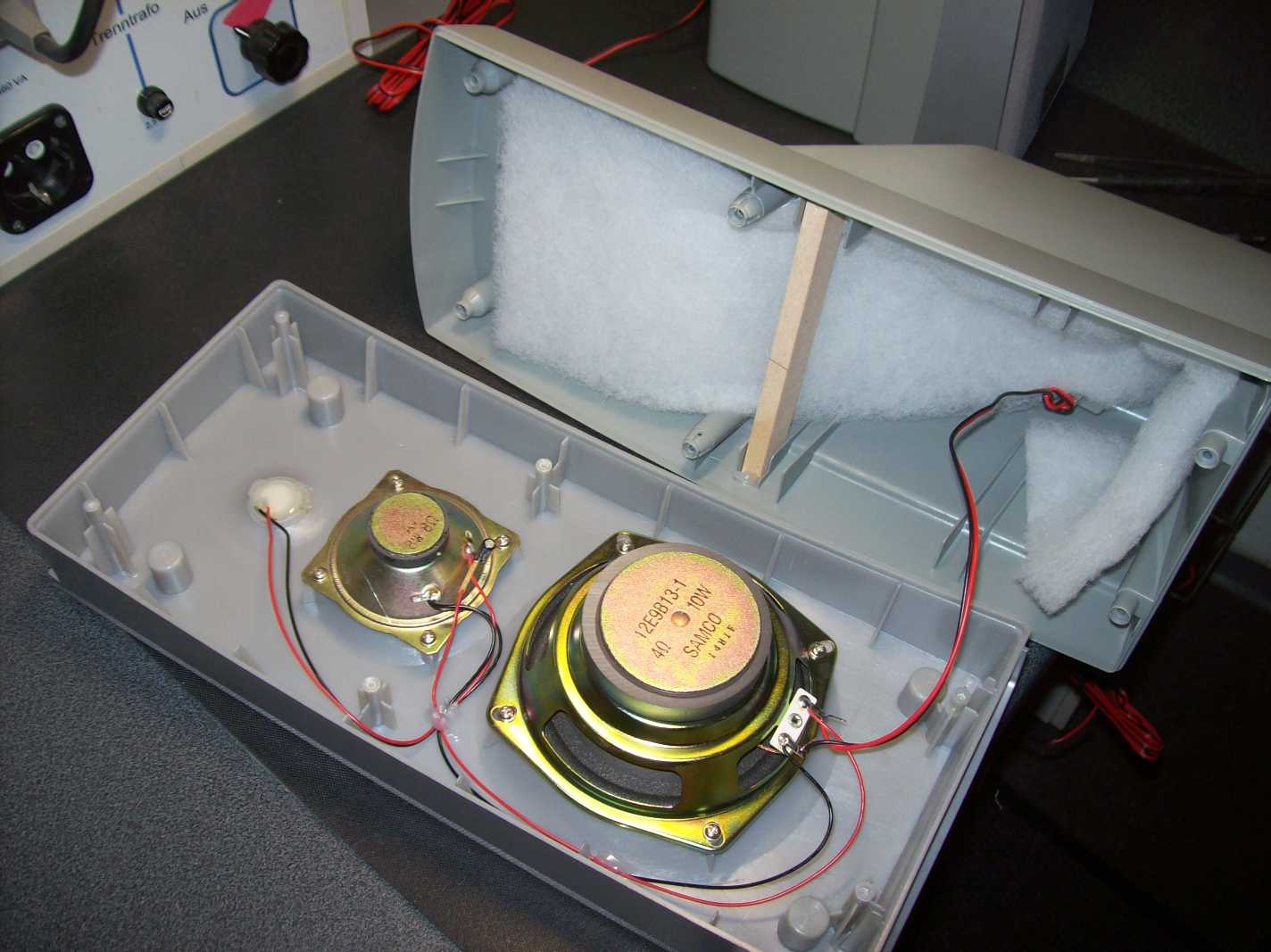 Damit ich beim Hörtest nicht restlos untergeh, nehm ich 3-Wege Spitzenboxen im gefälligen Graugehäuse vom Weltmarktführer "TCM"