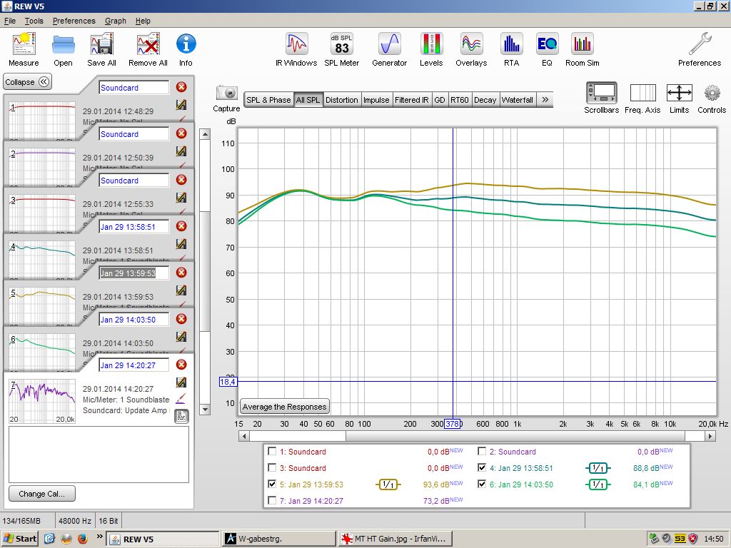 Geduld habe ich und leider nur noch Messungen vom Hörplatz - in Ohrenhöhe mit unterschiedlicher Verstärkung für MT + HT (nicht Winkel) gefunden;