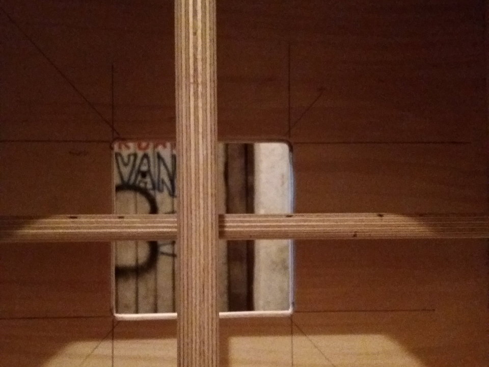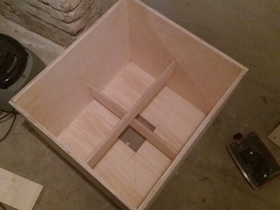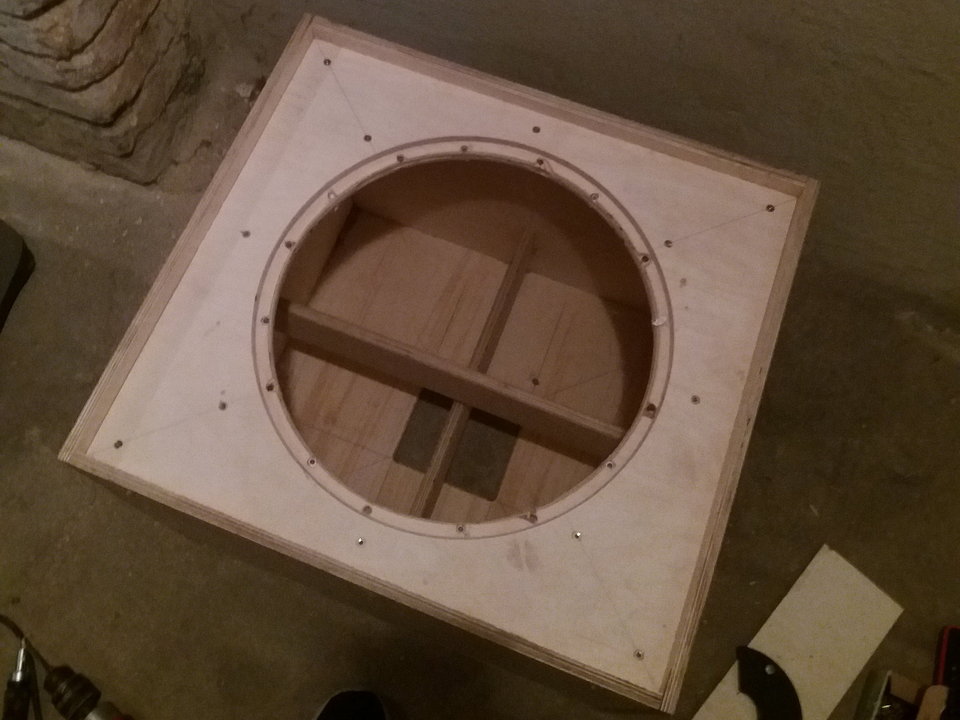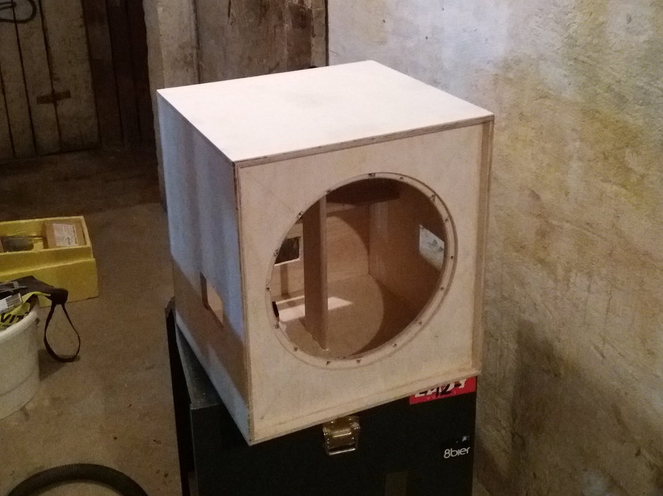 Wandstärke 12mm MPX, Front ist 15mm + 9mm aufgeleimt + geschraubt, innen zwei Streben mit 10cm Tiefe.