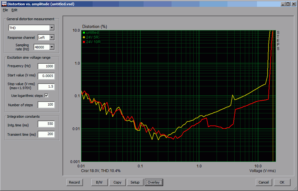 Der Einbruch der Verzerrungen ist bei 10R, bei 5R sind die Verzerrungen höher.