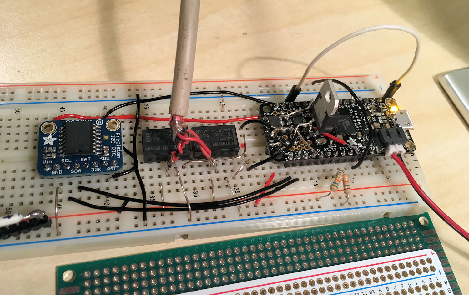 Aktueller Status: Spannungsversorgung mit einem alten 12V Netbooknetzteil, die Ansteuerungsschaltung mit Mosfets und Minirelais steht.