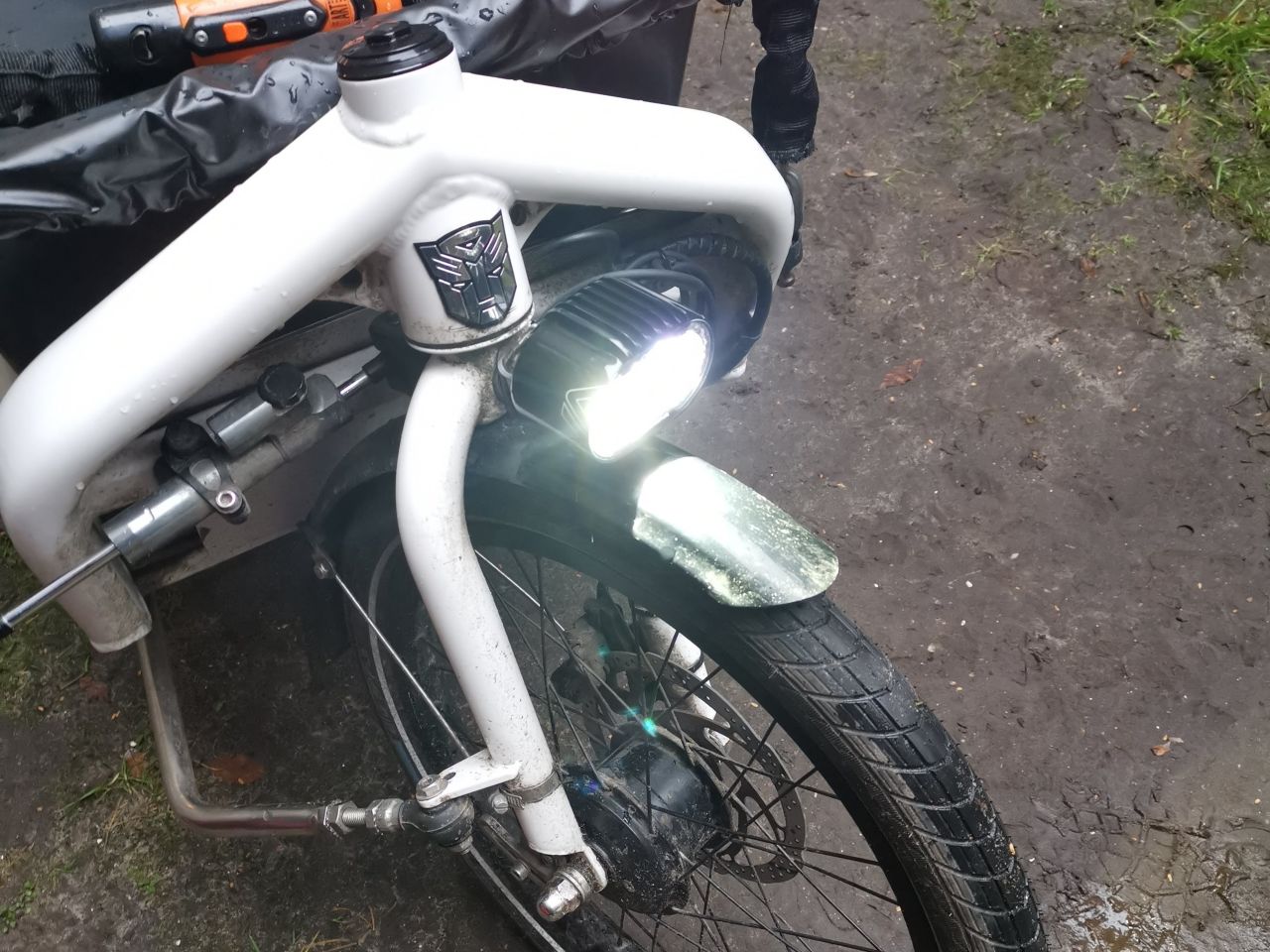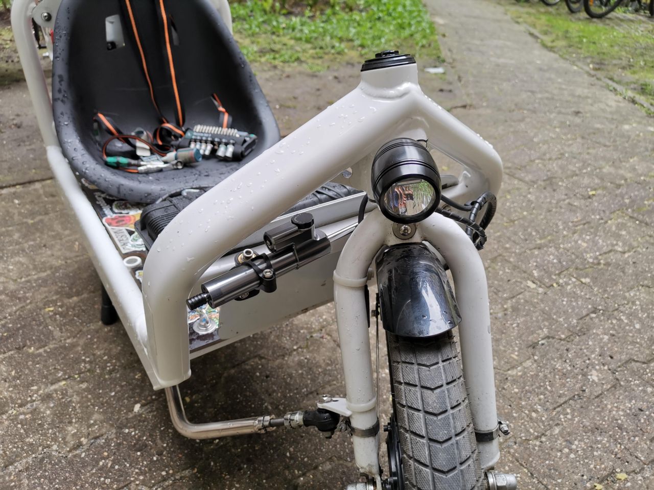 Bisher hatte ich an diesem Ausgang ein Rücklicht mit 3W sowie ein Frontlicht mit knapp 5W montiert, was zuverlässig funktionierte. Das Rücksicht hat ca. 100cm Kabel nach hinten, das Frontlicht ca. 130cm nach vorne. Mit Austausch der Frontlampe gegen eine Supernova M99 Pro begannen die Probleme. Diese Lampe hat Tagfahrlicht, 16W Abblendlicht und ~32W Fernlicht. (Ich möchte nie wieder etwas anderes)