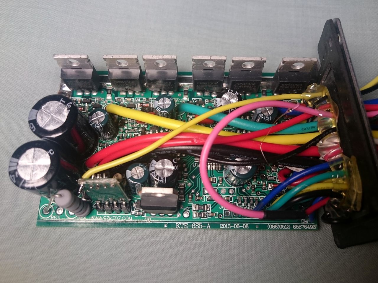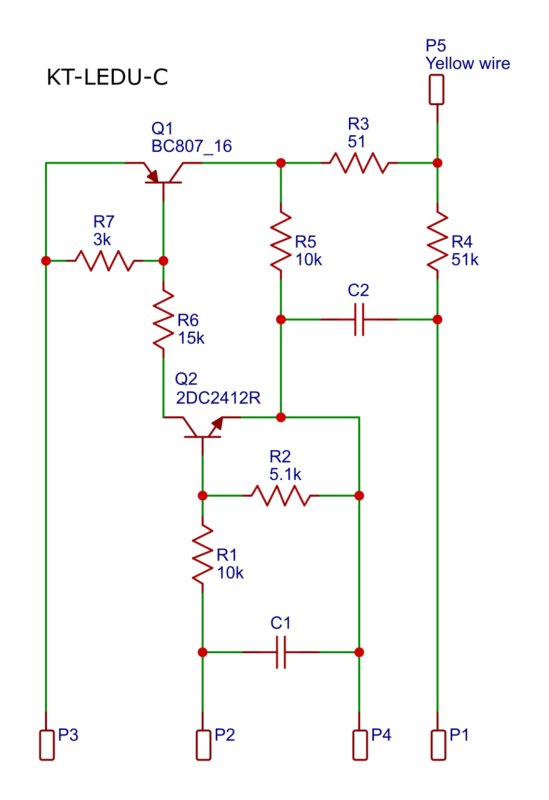 Ebike mit 48V Batterie (54.6Vmaklappe und KT-Controller für den Motor. Der Controller verfügt über einen Beleuchtungsausgang (mit Batteriespannung in voller Höhe), welcher über das Display geschaltet werden kann. In der Originalbestückung ist hier eine Schaltung enthalten, die maximal 6W bzw. 150mA zulässt. Bei Kurzschluss schaltet diese aus, verbindet man größere Leistungen (unter der Überstromschwelle) brennen Shunt und PNP-Transistor ab.