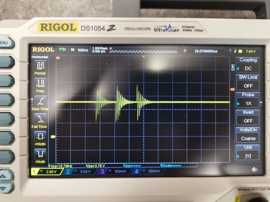 Hmm, es kommt tatsächlich von Rücklicht. Auch das läuft mit voller Batteriespannung und hat einen Buck integriert. Würde vermuten, das der im Pulsskip. Störungen können mit 100kHz. Am Eingang hat es 4u7 100V. Testweise mal etwas kleine Keramik dazu gepackt, hat keinen Effekt. Die Störungen sieht man im Controller auch auf der vollen Batteriespannung und der 5V Schiene.