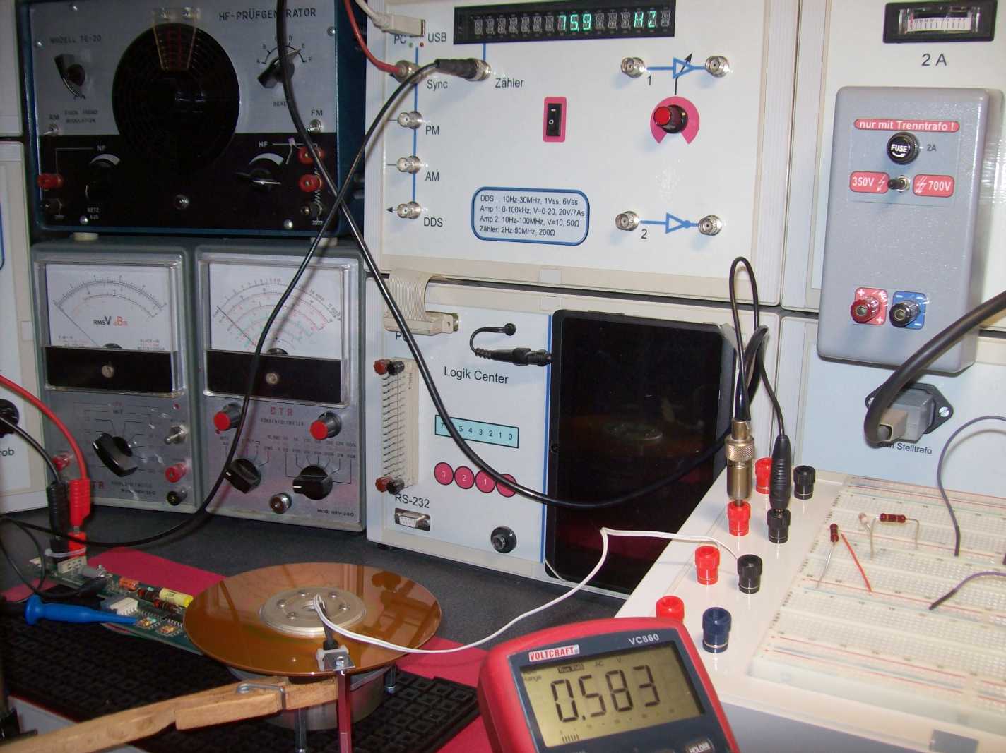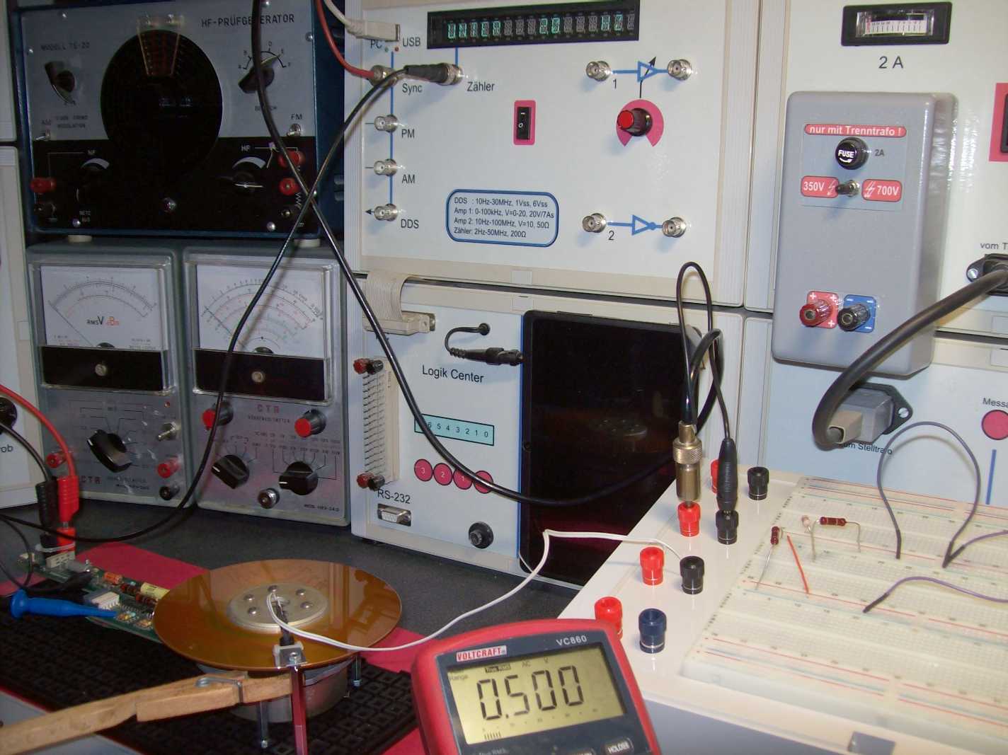 "Einfach so" mit einem halbierten Trafo die Drehgeschwindigkeit einer Scheibe aus x-beliebigem leitenden Material messen zu können, ist schon sexy. Kann auch ne kaschierte Platine sein.