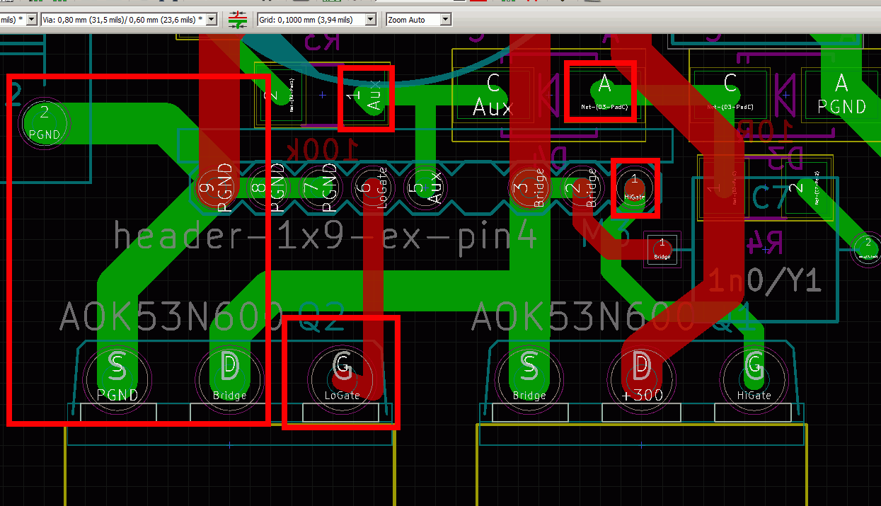 Auch möchte ich Fragen, ob der Kondensator Links, wo an der Drossel hängt, nicht direkt an diese angebunden werden sollte, anstatt beim Controller-Board einen Stützpunkt zu haben.