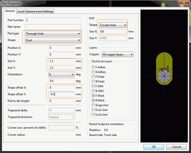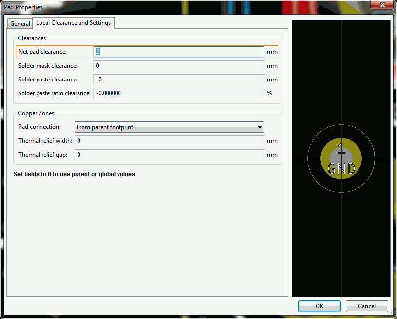 Drücke "E" auf der Bohrung und ändere im Untermenu "Local Clearance":
