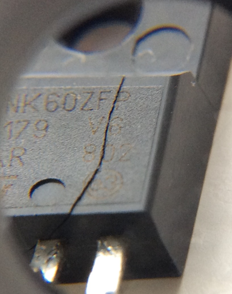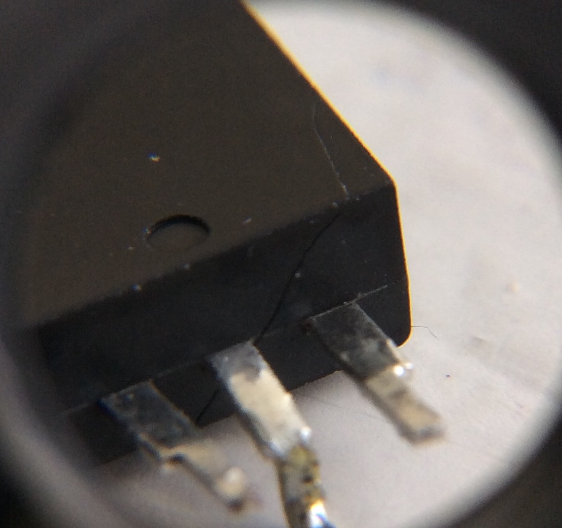 Spannung war aber wohl etwas da. Da der Mosfet nicht ganz gepasst hat und dadurch der Kühlkörper etwas nach oben abgehoben ist, habe ich einfach umgedreht. Auf Tisch gepresst und dann die Beinchen festgelötet.