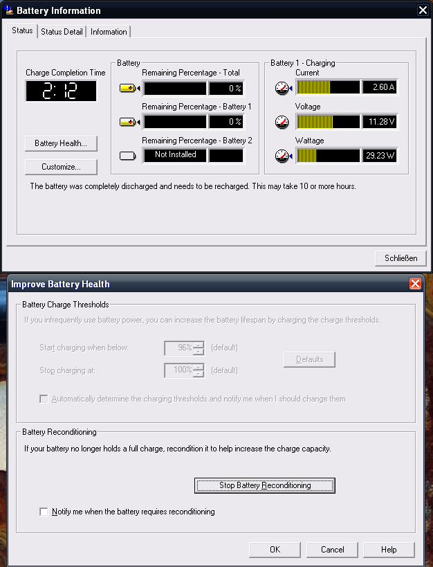Hey, Lenovo bietet immer noch steinalte Tools und Updates an! Das Update des "Battery Maximizer" scheint, zumindest oberflächlich gesehen" zu machen was ich will. In 10h weiss ich es vielleicht...