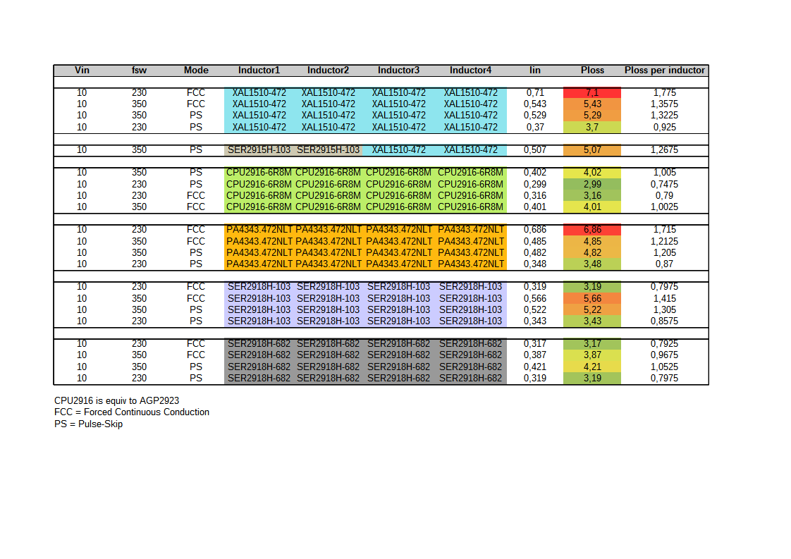 Hier der Vergleich einiger ausgewähter Spulen für den LTC3784. Gemessen wurde immer Leerlauf bei 230/350kHz in FCC/PS.