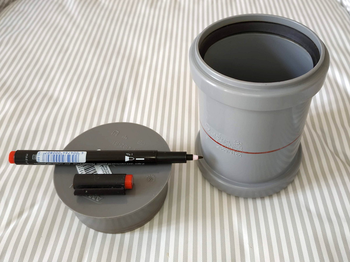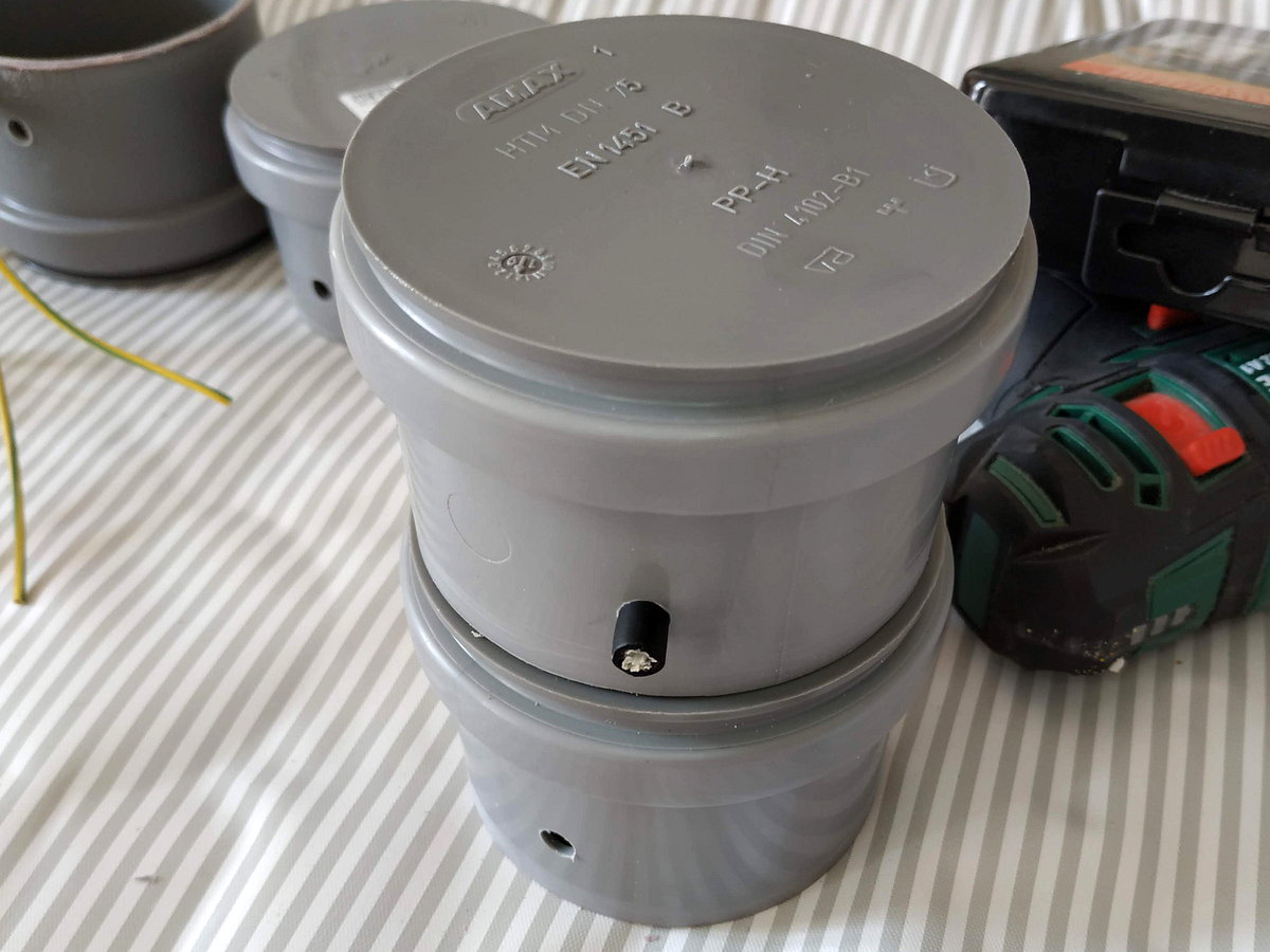 DN75 Doppelmuffe mit Verschlusskappe besorgen und halbieren: