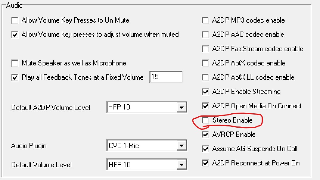 Sollte jemand hier auch von Stereo auf Mono umstellen wollen, so muss lediglich im ROM Config Tool (Oder auch das Headset Config Tool für das CSR) der Haken bei "Enable Stereo" entfernt werden. Dann Write und fertig, der CSR liefert endlich verlustfrei Mono auf beiden Kanälen!