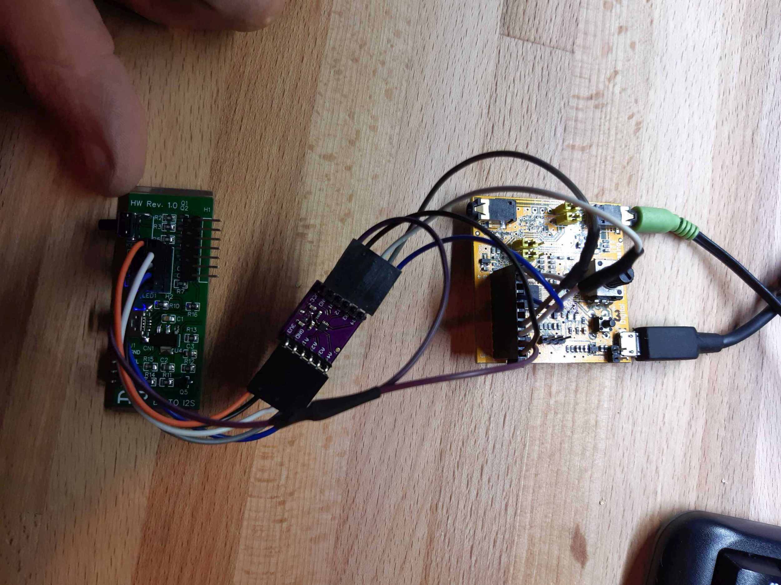 Am ADAU und den von christianw erwähnten Verbindungen (LRCLK und BCLK von Out auf In Brücken) funktioniert, jedoch klingt das Signal als würde man mit +20dB übersteuert in einen Analogeingang fahren. Daraufhin habe ich im ADAU einen 7 Band Pegelanalyzer reingebaut, der zeigt an, dass die "Energie" <100Hz ist.