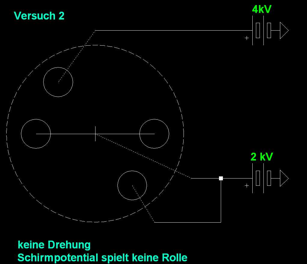 Dein Verbinden des Schirms mit +2kV hatte ich natürlich auch bei meinen Versuchen getestet, denn sonst hätte ich "Schirmpotential spielt keine Rolle" ja nicht hingeschrieben.