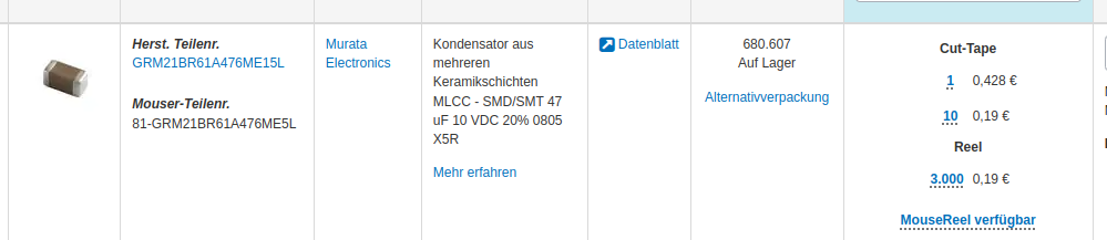 Wobei bei dieser Anwendung zu beachten ist: die mlcc cer caps sind etwas sensibel auf Überspannung, also besser, etwas Sicherheits-reserve drin zu haben.