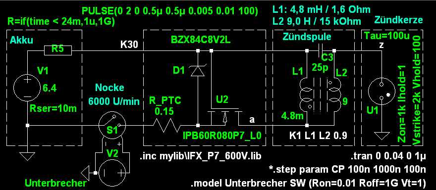 So lange der PTC nicht abgeschnürt hat, funktioniert alles wie bei einer normalen Kontaktzündung. Keine kritischen Timings. Und da der PTC nun auf der Platine sitzen wird, sollte er den MOS überwachen. Denn der MOS hat sozusagen einen 4.8V-UVLO eingebaut wobei sich seine Verluste in dem Grenzbereich auf ein paar hundert mW erhöhen.