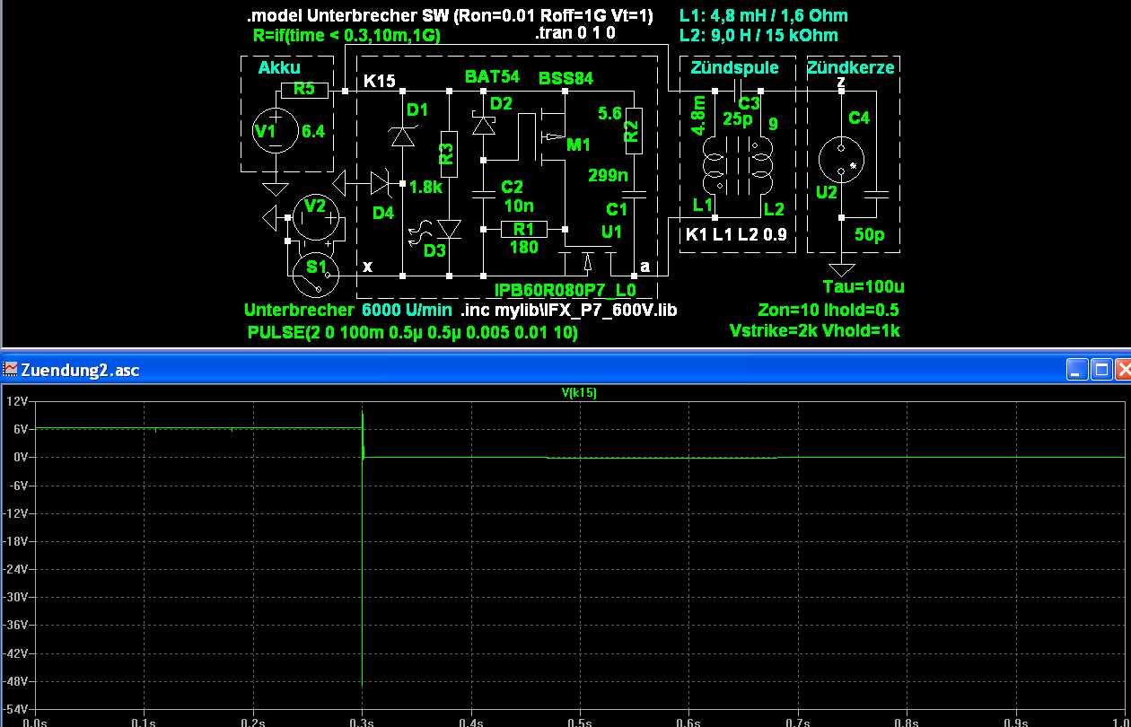 Unweigerlich wird nun K15 auf unter Null gezogen. Nur gebremst vom C3 ESR und vom Innenwiderstand D1. Das kann zum Durchschlagen des MOS-Gates führen.