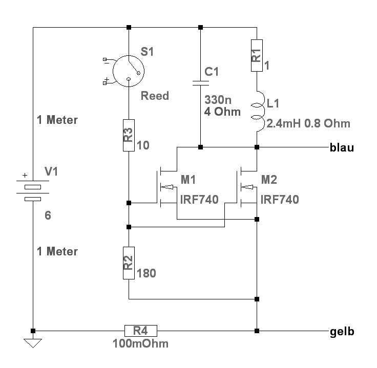 Es ist nur eine Testschaltung für die Endstufe. Das Reed-Relais ersetzt den PMOS.