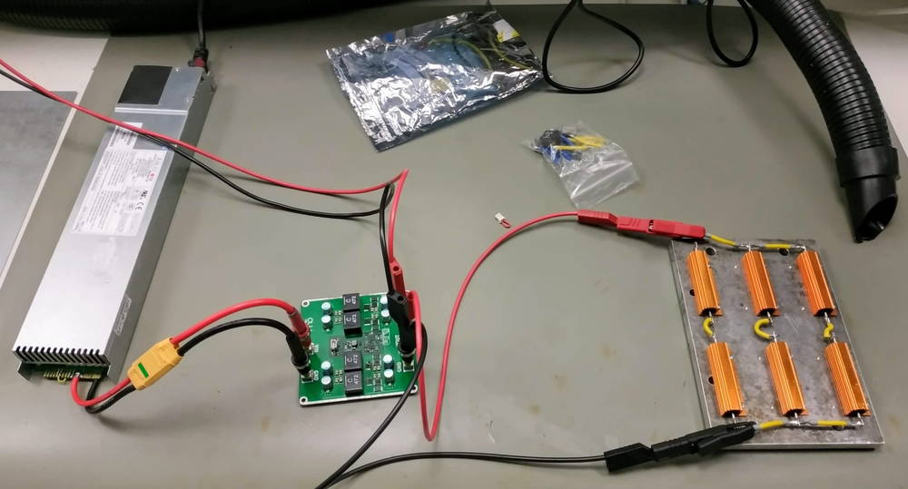 Mit passender Last konnte ich nun bei 250/500/750W Ausgangsleistung testen - mehr gibt meine Versorgung nicht her. (12V 66A)