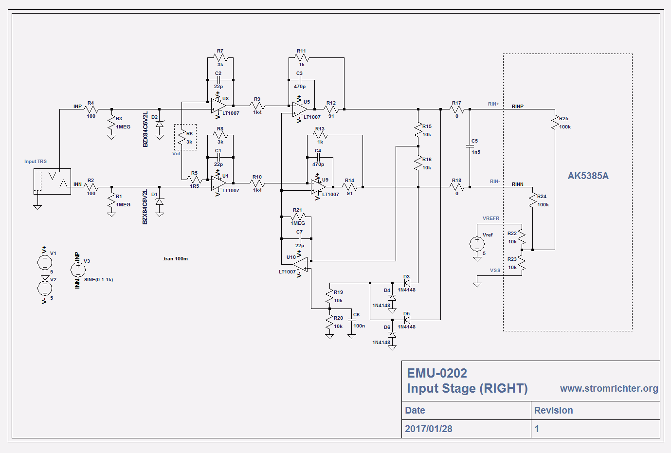 habe ich das AFE der rechten Seite in Lt-Spice generiert. Welche Werte als "Standard" für die Kondensatoren?
