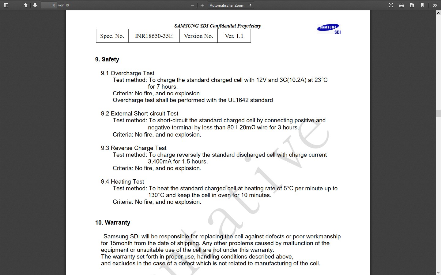 bei mir war es da nicht ganz so harmlos. die zelle die ich im emergency discharge entladen habe wurde binnen sekunden heiß genug das ich sie kaum noch anfassen konnte, was zu dem wasserbad geführt hat. habe die zelle für ca 1,5 stunden kurzgeschlossen gehabt, da ich beim auseinander reißen des akku pack’s die zelle beschädigt habe (hatte ein loch am boden der zelle). gemessen hab ich danach erstmal 0,0v. nachdem ich gestern wieder aufgewacht bin hat sie bis auf 3 volt recovered. find ich immernoch merkwürdig, ich wäre doch davon ausgegangen dass sie vlt 1 volt wieder hochgeht aber mit 3 habe ich echt nicht gerechnet.