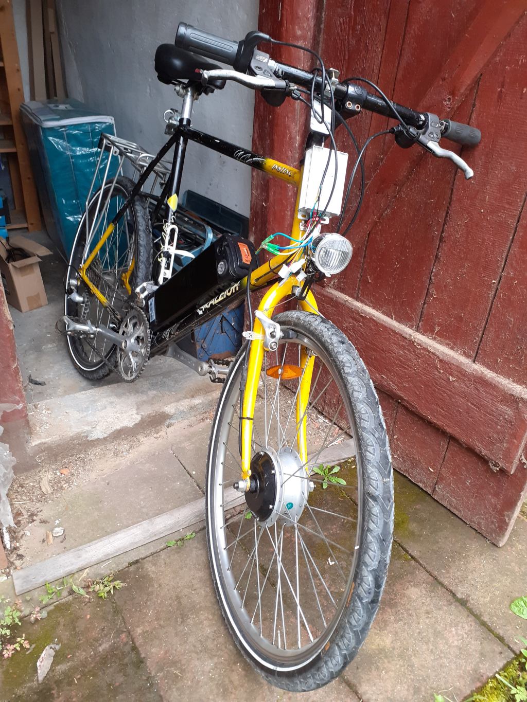 Nach langer Sammelzeit steht ein neues altes 1/3 PS Pferdchen mit Anhängerkupplung im Ziegenstall, neu ist nur die Bremse hinten und der Controller - hat mich insgesamt etwa 70 € gekostet und ist wie zu sehen weitgehend aus Teilen vom Straßenrand.