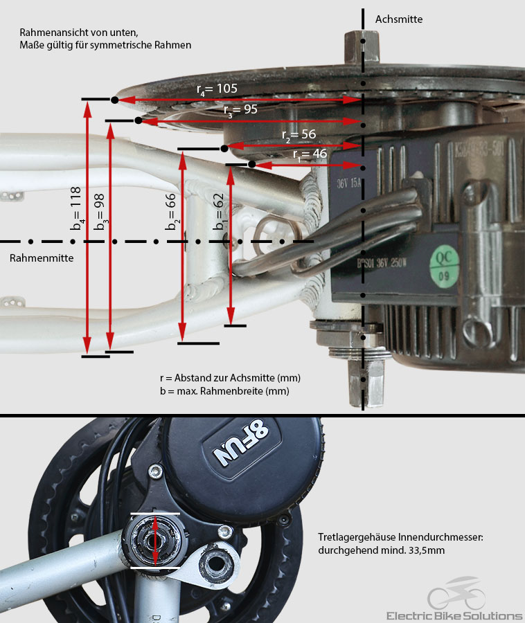Wie dick darf der der Rahmen für die BBS01 sein? Also welchen Spalt kann man überbrücken vom Tretlager zum Motor?