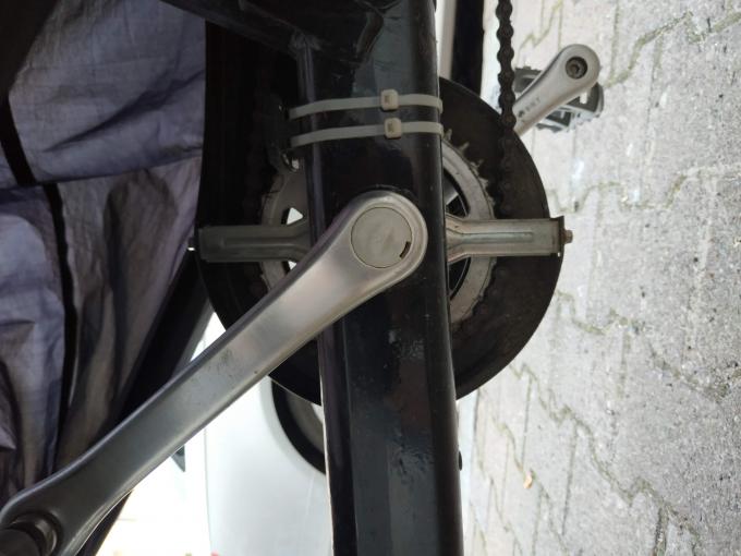 Beim Tandem geht die Montage, wegen dem zu dickem Exenter vorne, nur hinten in der Tretlageraufnahme und wegen dem waagerechten Unterrohr nur nach unten/hinten gedreht.....