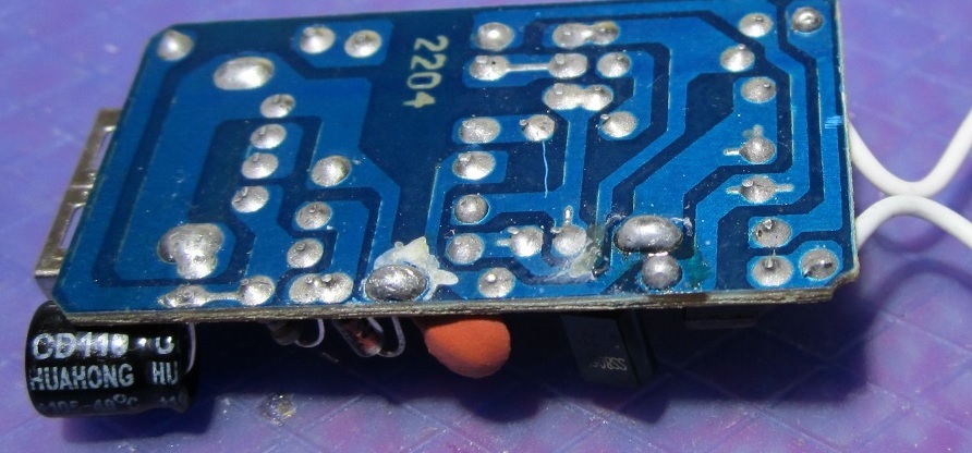 Iso.test > 1GOhm, 1.5kVAC spark test auch überstanden: achja, den sinnfreien 1nF ker.mini.cap hab ich entfernt, seine Anschluss-bahn hab ich ja eh weggefräst und ein korrekter Y2 hatte doch tatsächlich um 1mm zu wenig Platz;