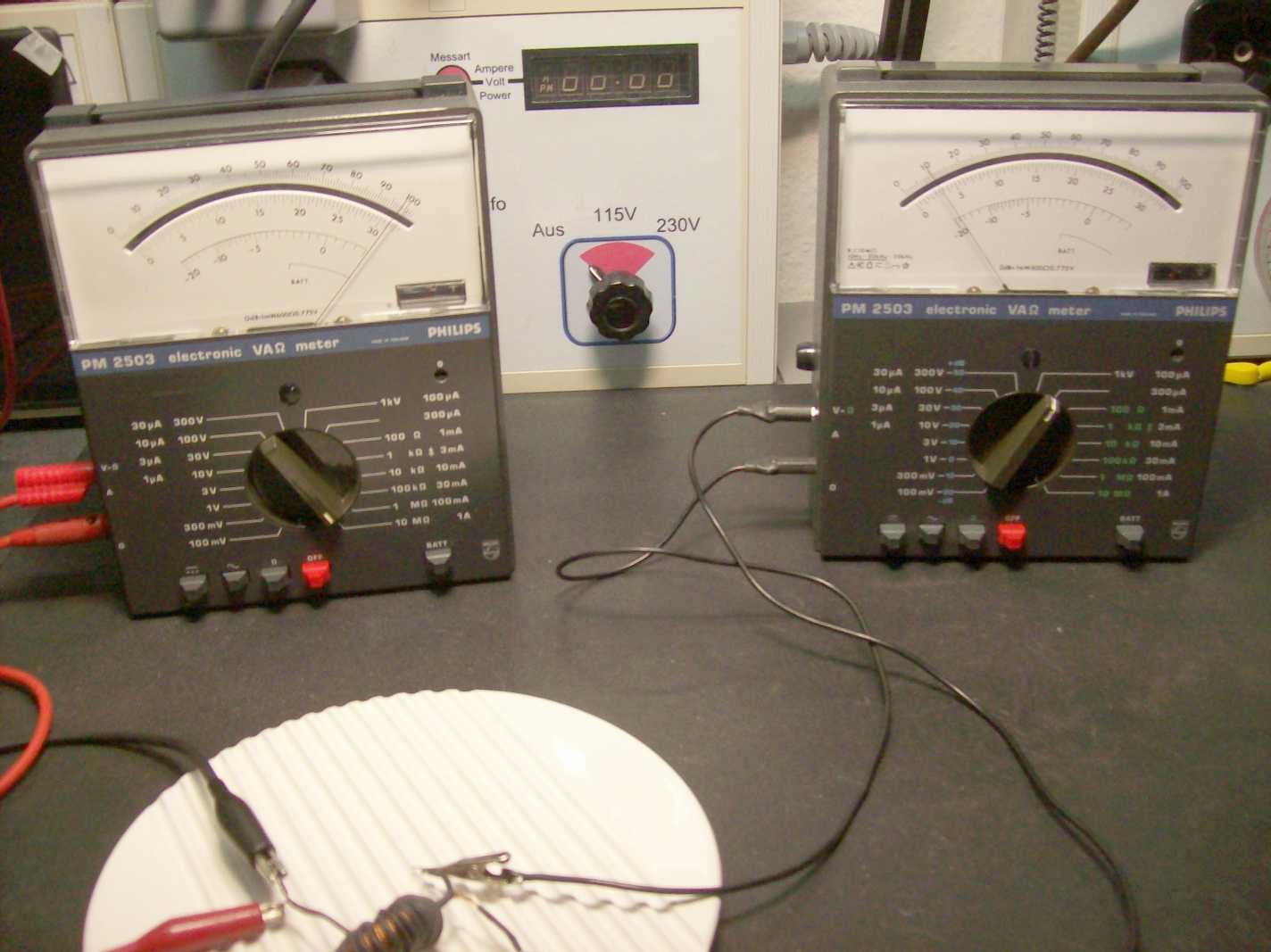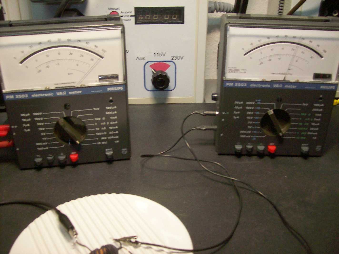 Beide Amperemeter (links 1A, rechts 300uA) zeigen absolut nichts: