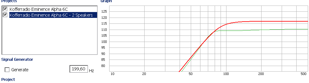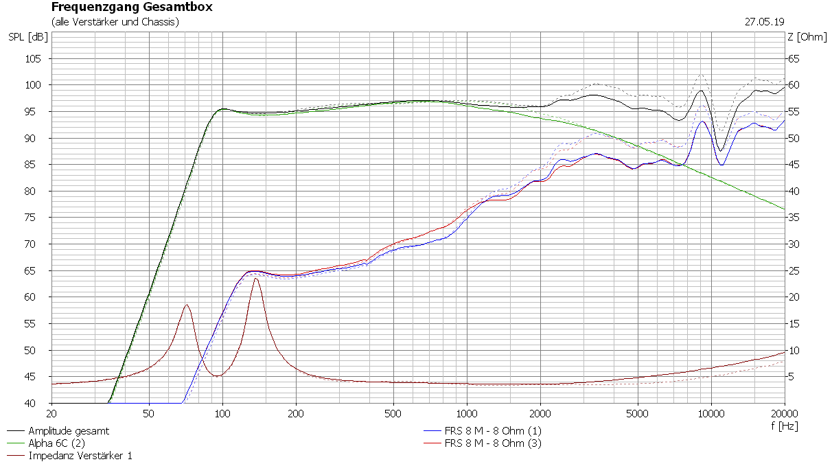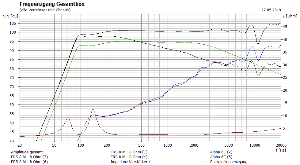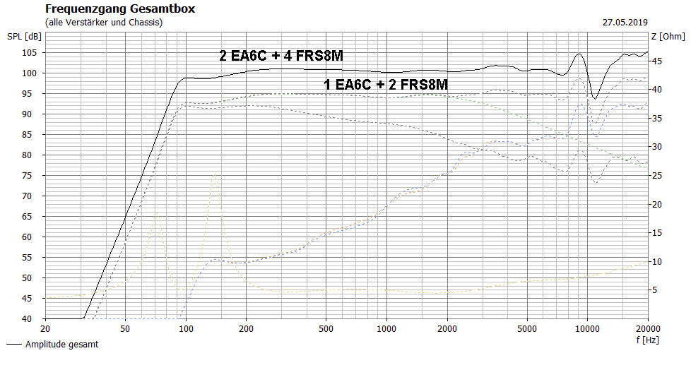 Hilft aber alles nix, im Vergleich zu 2 Eminence Alpha 6C fehlen dann 12dB über den ganzen Bereich.