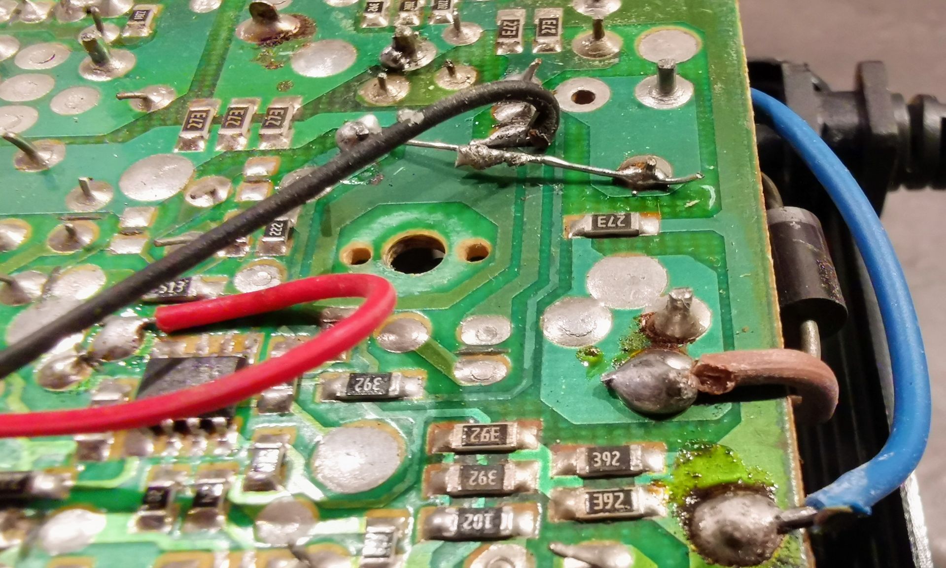 Die Drahtbrücke im ersten Bild ist übrigens der Ersatz für die durchgebrannte, aber immer noch vorhandene Ausgangssicherung.