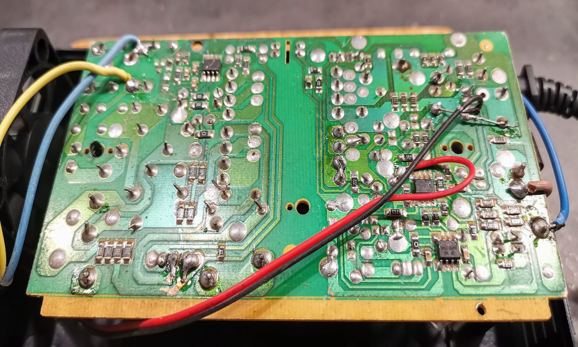 Ich hätte tatsächlich mehr erwartet bzw. habe ähnlichen Kurs schon besseres gesehen. Ich habe grundsätzlich nichts gegen Recycling, aber so, wie das zusammengehauen ist, kann/wird es nicht lange gut gehen. Vor allem die Risse der Lötstellen an den bedrahteten Bauteilen werden Probleme machen. Einzig das Gehäuse scheint "neu", allerdings ist das Plastik auch von unglaublich bescheidener Qualität.