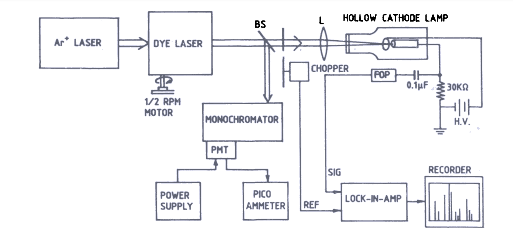 Das Signal kommt von einer Hohlkathode, welche mit einem Laser durchleuchtet wird. Hierbei wird Material verdampft und es ergeben sich je nach eingesteller Wellenlänge des Lasers Impulse entsprechend des Spektralverhaltens.