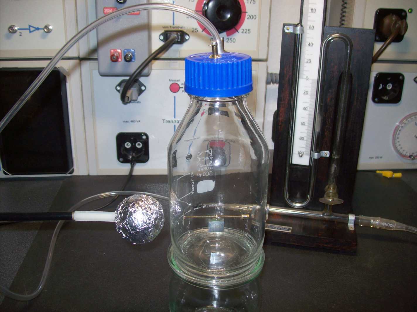 Ich hoffe, dass es auch durch das Glas hindurch geht. Wenn das klappt, kann ich die Luftreibung durch Unterdruck minimieren und dann über sehr viele Pendel-Schwingungsperioden messen.