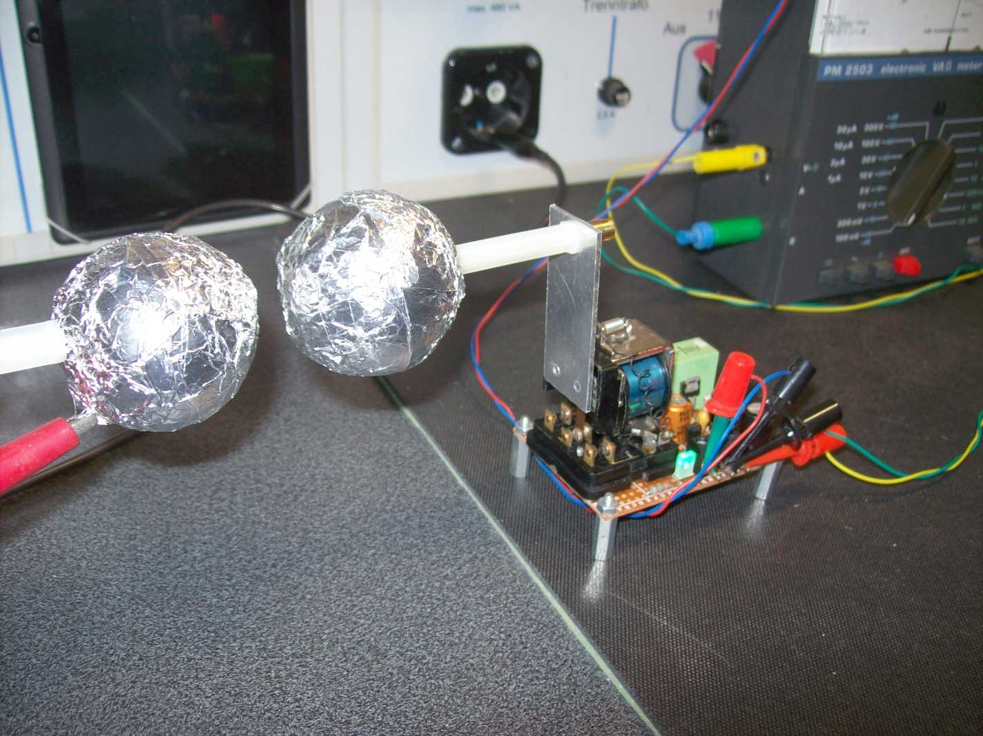 - 10 kV in 5 cm Entfernung zwischen den Mittelpunkten der Kugeln: 1.8mV aus dem DA-Wandler