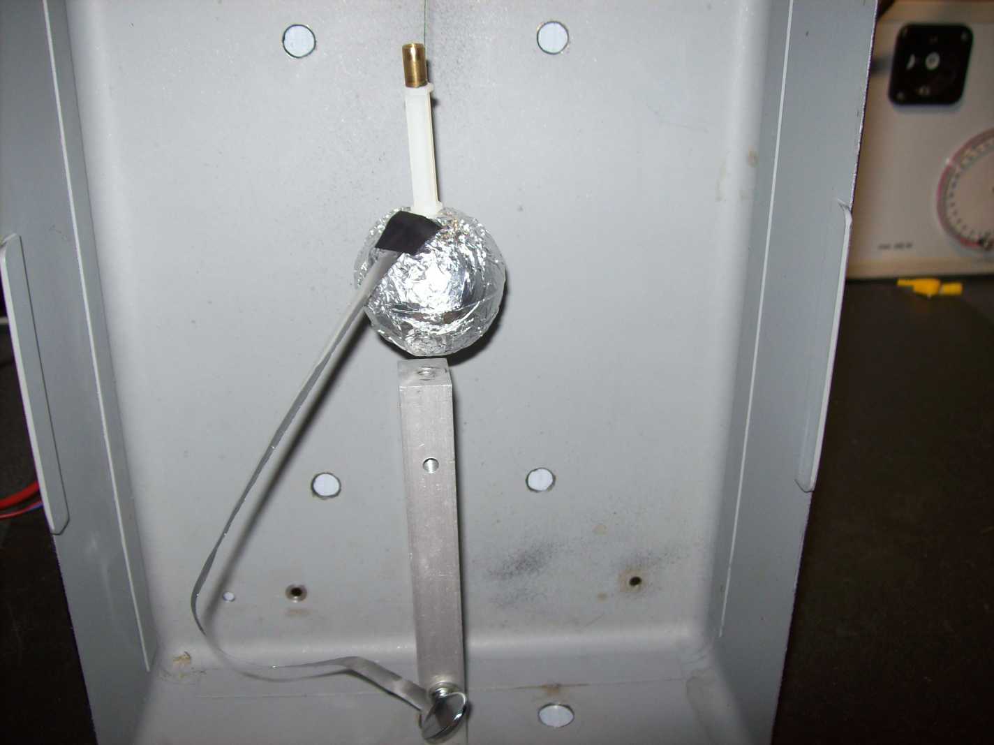 Besser wäre es, wenn die Messelektrode mit einem "idioelektrischen" (das Coulomb-Wort finde ich genial) Stößel oder isolierten Zugband die Kraft misst. Elektronik usw. also außerhalb. Und die Messelektrode innerhalb des Käfigs.