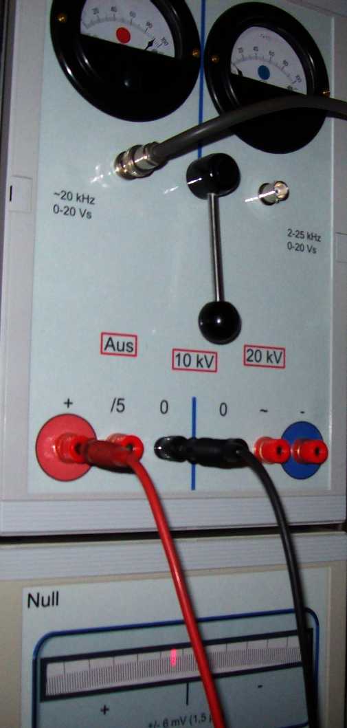 Ohne Hochspannung zeigt das Spiegelgalvanometer nichts!